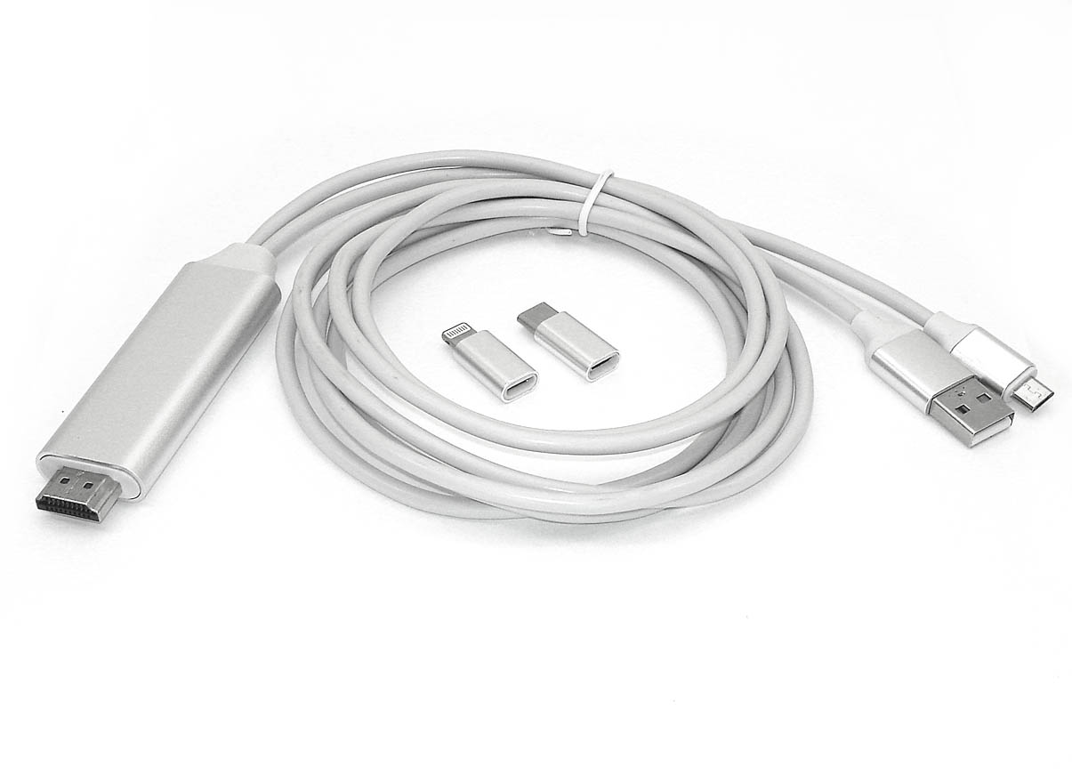 Переходник для любых телефонов на Mini HDMI (Micro USB, Tupe C Lightning). На телефонах с Android нужно активировать debug mode!