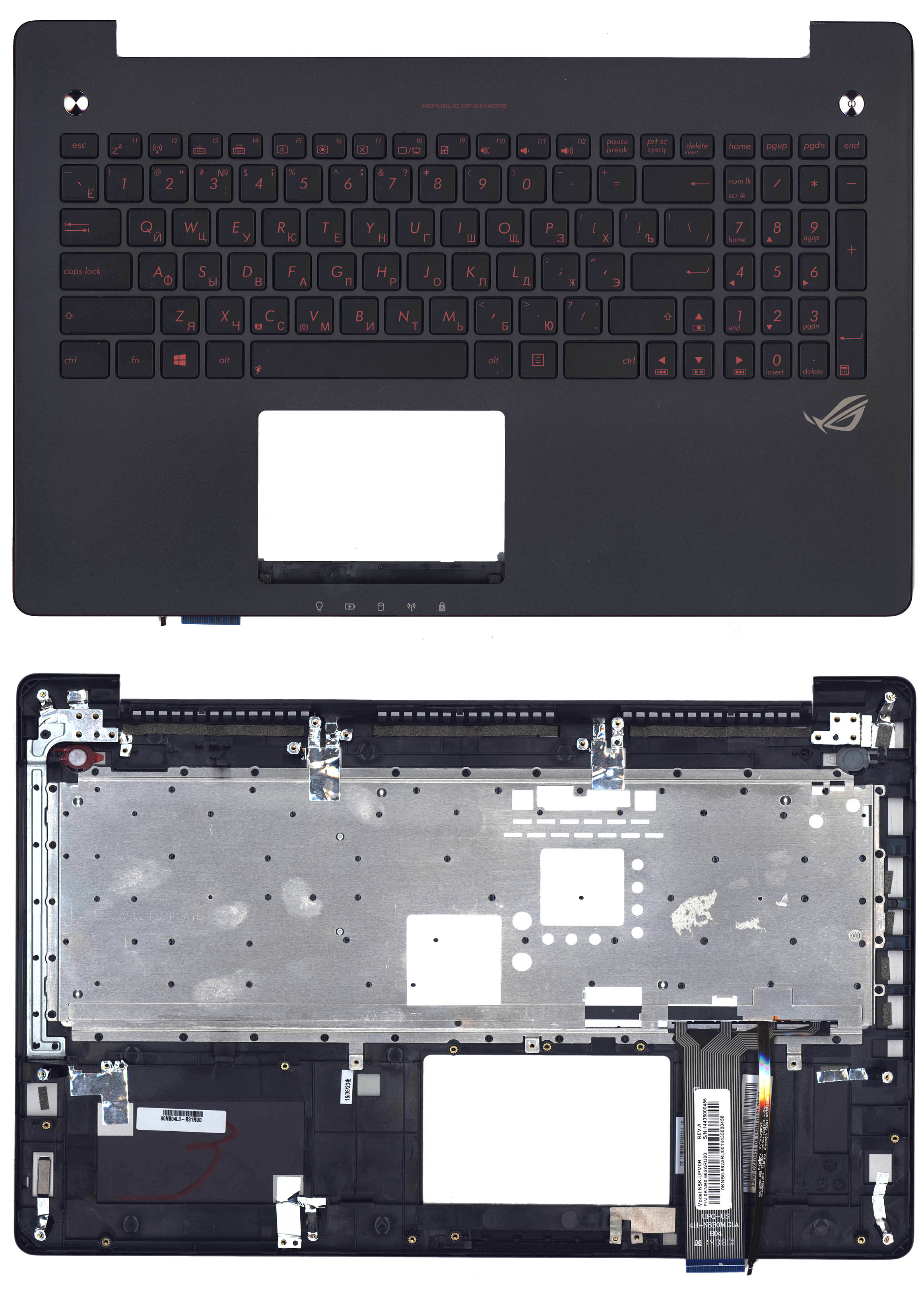 клавиатура для ноутбука G550JK с топкейсом , черная панель, малиновая окантовка, с подсветкой